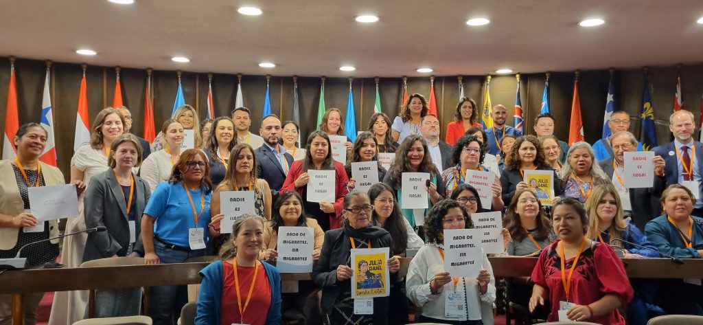 En marzo de 2025, diversas organizaciones de la sociedad civil se reunieron en la sede de la CEPAL en Santiago, en el marco de la Segunda Revisión Regional del Pacto Mundial para la Migración Segura, Ordenada y Regular en América Latina y el Caribe. El espacio abordó los 23 objetivos, donde se evidenciaron brechas en su implementación regional. Entre tanto, el Estado chileno sigue sin suscribir el acuerdo, pese a que fue el país anfitrión del encuentro.