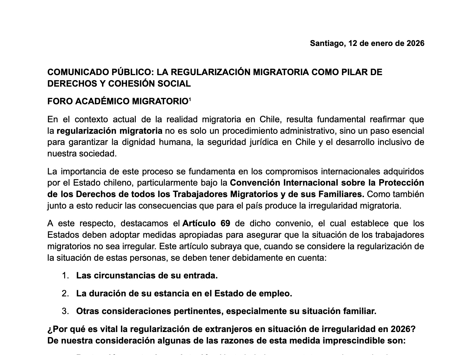 Comunicado del Foro Académico Migratorio (Chile) COMUNICADO PÚBLICO – FORO ACADÉMICO MIGRATORIO ENERO 2026Descarga Navegación de entradas Informe Voces desplazadas: Radiografía del exilio periodístico latinoamericano (2018-2024) Informe especial sobre la situación de la libertad de expresión en Chile 2024