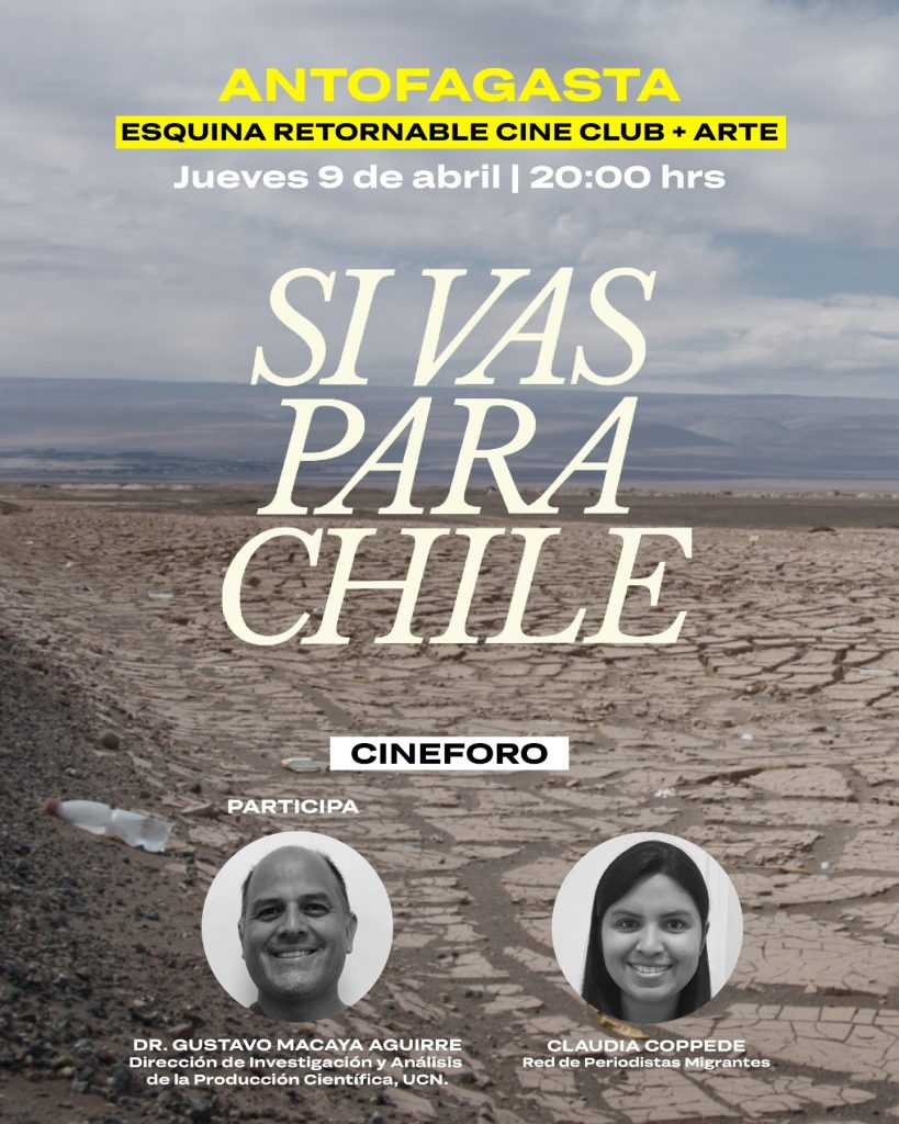 Este jueves 9 de abril, a las 20:00 horas, se realizará en Antofagasta, el cineforo del documental “Si Vas para Chile”, una obra que recorre desde el altiplano hasta el farellón costero del norte del país para mostrar cómo la migración está reconfigurando la realidad chilena.